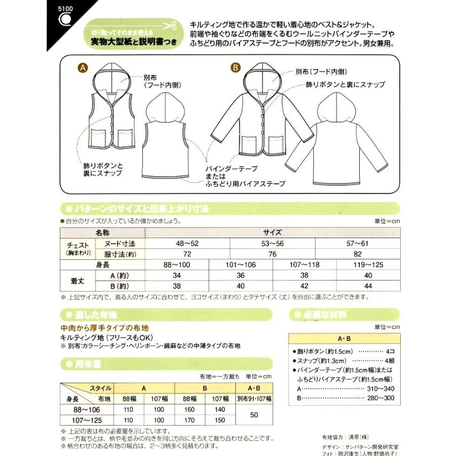 パターン 型紙 こども キルティング ベスト ジャケット 簡単 実物大 作り方 子供服 ベビー服 キッズ 5100 手芸のピロル ヤフーshop 通販 Yahoo ショッピング